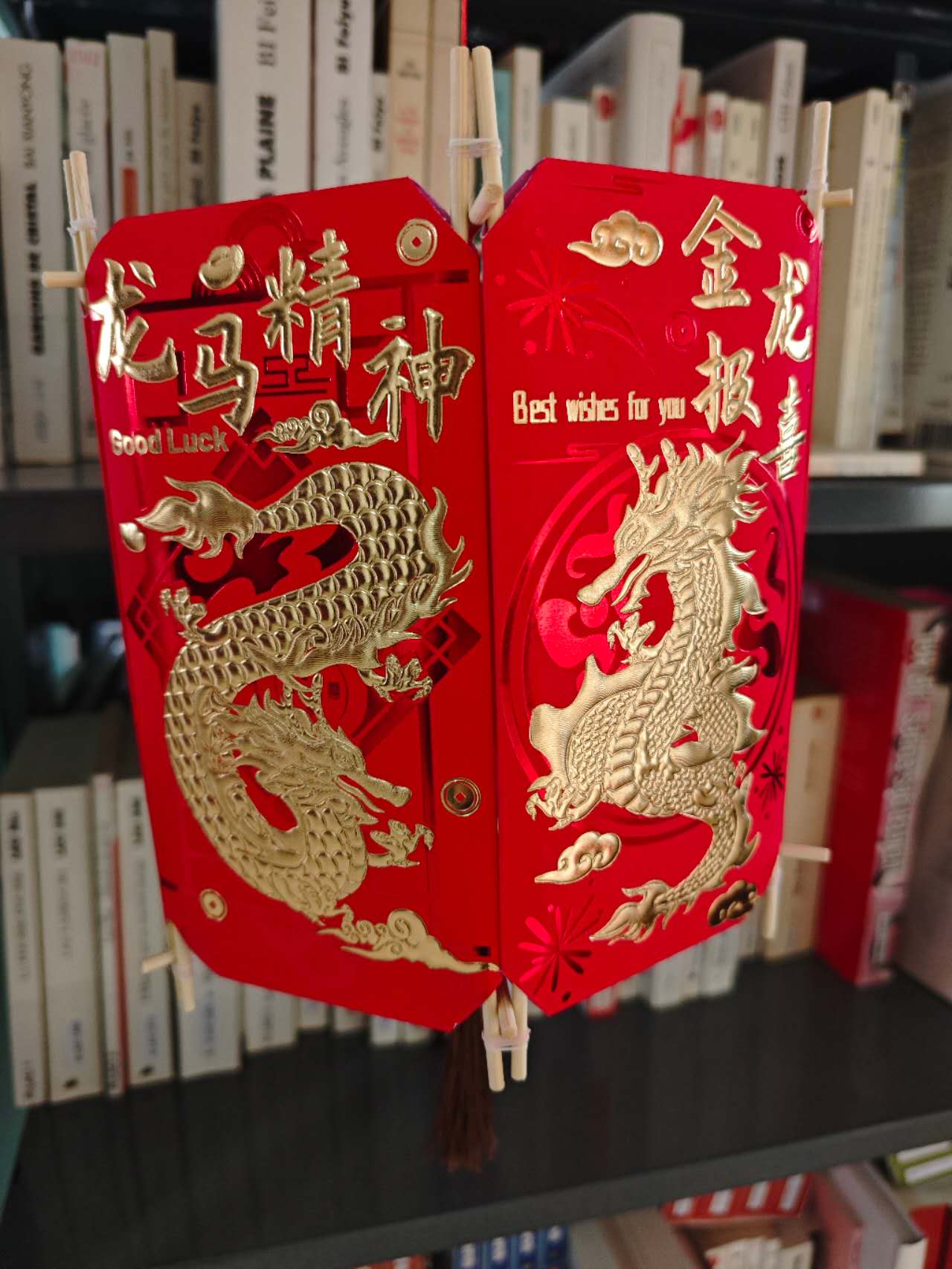 Enveloppe rouge, poisson d’or, cheval