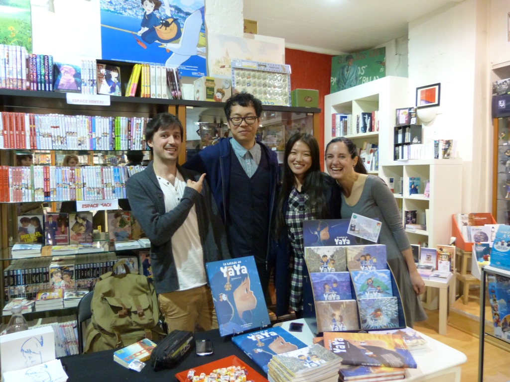 Golo Zhao s’est ensuite rendu à libraire AZU Manga où un groupe de « fans » l’attendaient avec impatience pour obtenir une dédicace. A l’occasion de la sortie de l’intégrale des volumes 4-6 de « La balade de Yaya », l’artiste s’est prêté au jeu de la dédicace, heureux de partager avec ses lecteurs.